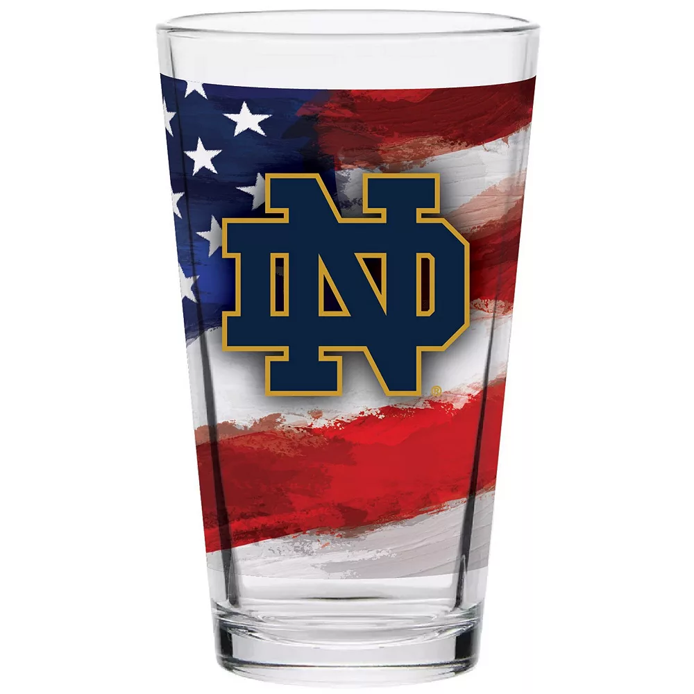 This Americana Pint Glass features Notre Dame Fighting Irish graphics over an American flag backdrop, making it perfect for toasting on game day. Break this out on special occasions for a spirited way to celebrate a Notre Dame Fighting Irish victory.