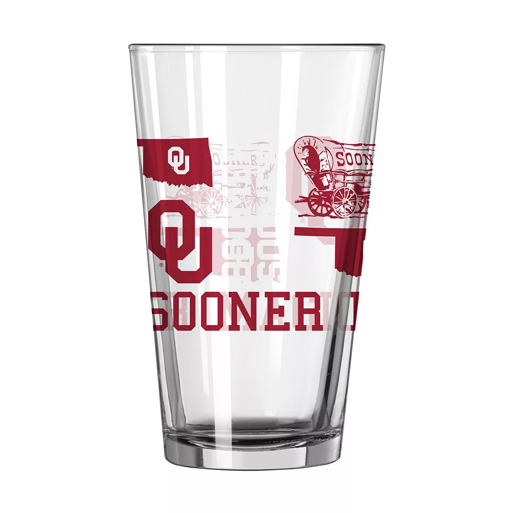 Enjoy your favorite game day beverage from this Spirit pint glass. Designed with iconic Oklahoma Sooners graphics, it holds up to 16oz. of your drink. Proudly raise this glass every time the Oklahoma Sooners score.