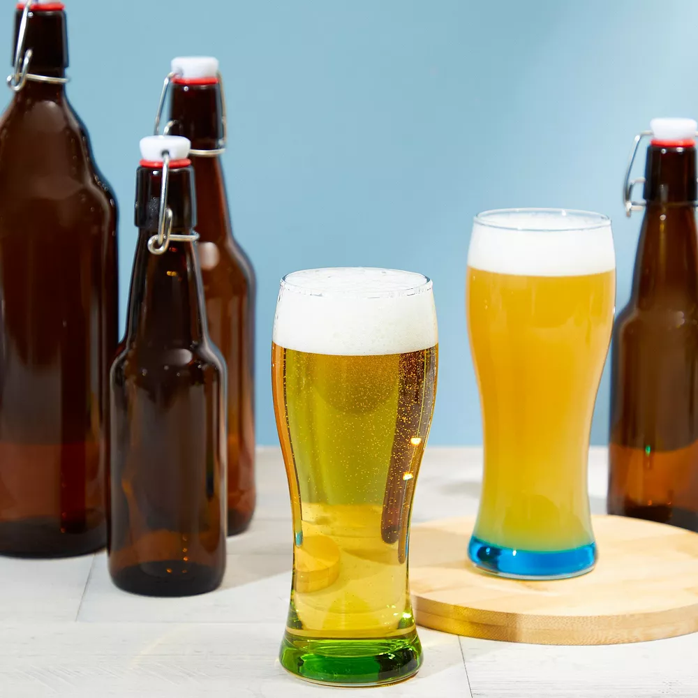 - What’s Included: Includes 4 assorted beer glasses with red, green, blue, and purple-colored bases