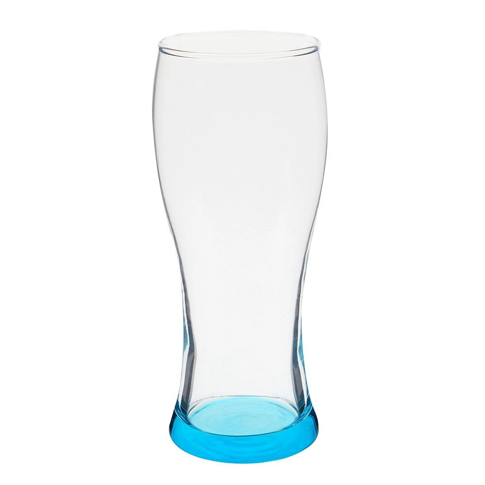 Enjoy a refreshing ipa beer, fruit smoothie, shake, lemonade, or alcoholic beverage in this set of 4 beer pint glasses. The decorative and vibrant purple, red, green, and blue-colored bottoms will instantly liven up dining tables in any restaurant, bar, or home. Each custom beer glass stands 7.25 inches tall and has a capacity of 16 ounces.