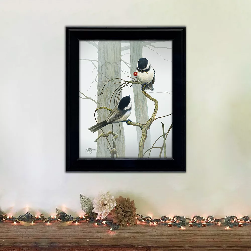 This “Love is in the Air” framed behind glass wall art is the perfect addition to your living room wall.