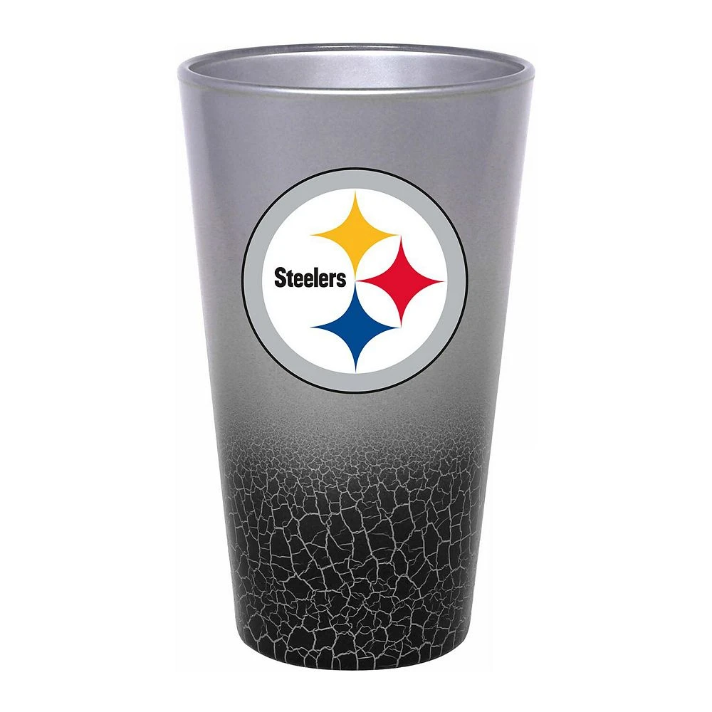 Celebrate every Pittsburgh Steelers win by enjoying your favorite drink out of this 16oz. pint glass. The team’s iconic logo is emphasized by the unique crackle design at the bottom of the cup, making it the perfect option for you to represent the Pittsburgh Steelers in a fun and exciting way.