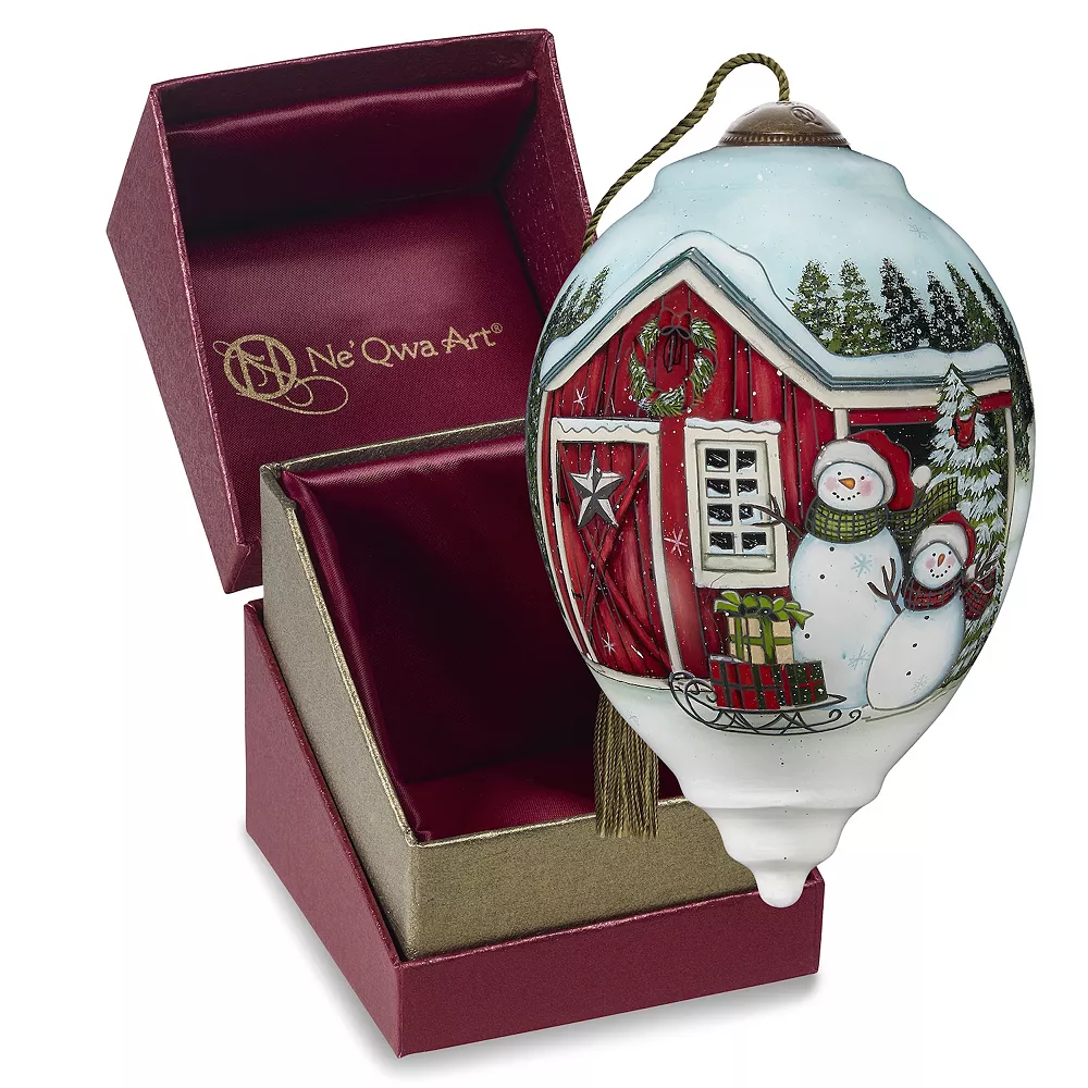Decorate your Christmas tree with this Precious Moments Snowman Glass Christmas Ornament.