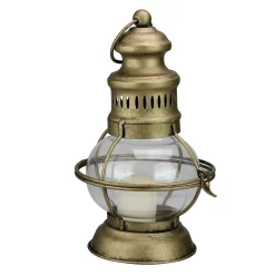 A traditional Christmas with family friends is always full of love and fun. From the Midnight Glamour collection this antique-styled lantern is a great way to brighten up your holiday decor and impress guests. Display alone or pair with other decorative items for a unique holiday decoration. Antique style Glass candle lantern. Golden metal candle lantern with weathered finish and black accents. Round class candle holder inside the metal shell. Large round hoop allows item to be easily hung. Fits (1) 2 votive candle – NOT included. Dimensions: 10 high x 6.25 diameter. Material(s): metal/glass