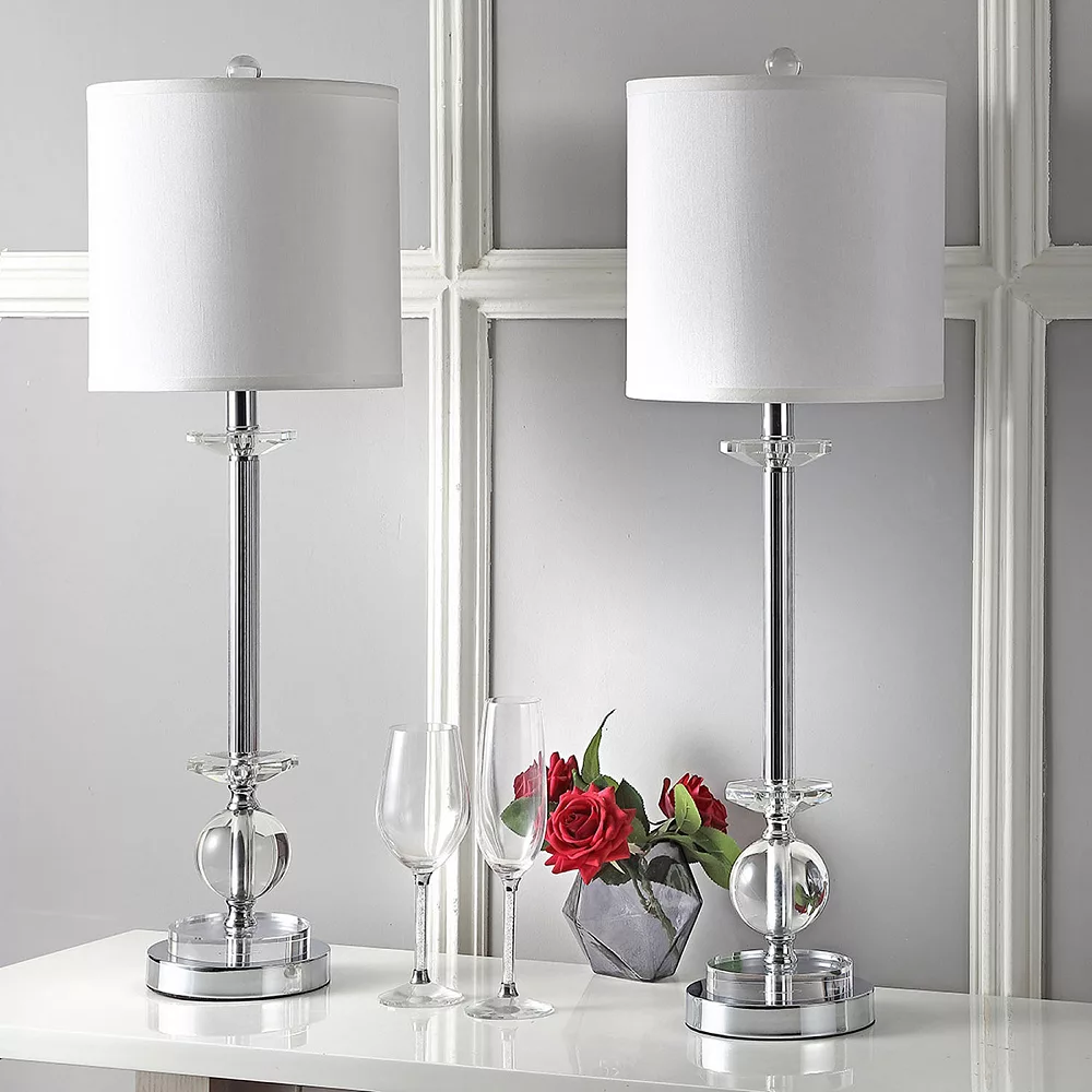 A contemporary take on the classic candlestick look, these Safavieh table lamps are understated yet chic.