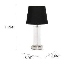 Why not have the best of both worlds with this metal and glass table lamp? This lamp features a closed in glass cylinder base with metal accents beneath a tapered fabric shade. Perfect for those seeking a well balanced design amidst the ample light output.
