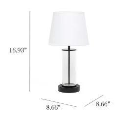 Why not have the best of both worlds with this metal and glass table lamp? This lamp features a closed in glass cylinder base with metal accents beneath a tapered fabric shade. Perfect for those seeking a well balanced design amidst the ample light output.