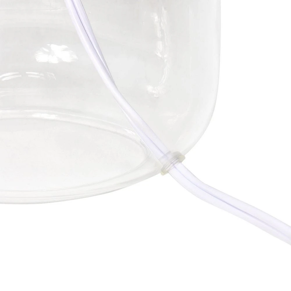 - Shade Material: Fabric. Cord Color: White. Cord Length: 64. Finish/Color: Clear + Gray. Primary Material: Glass. Bulb Included: No