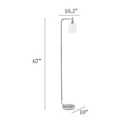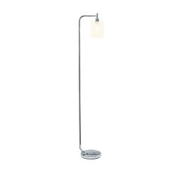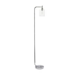 The perfect floor lamp to add a modest, refined look to any room! The iron base and curved arm are accented with a simple glass shade for a sophisticated touch. Perfect for foyers, bedrooms, living rooms or even offices! Chrome finish. Clear glass cylindrical shade. Uses 1 x 60 watt Type A medium based Incandescent bulb (not included). Easy to use on/off floor switch on cord. Some Assembly Required.