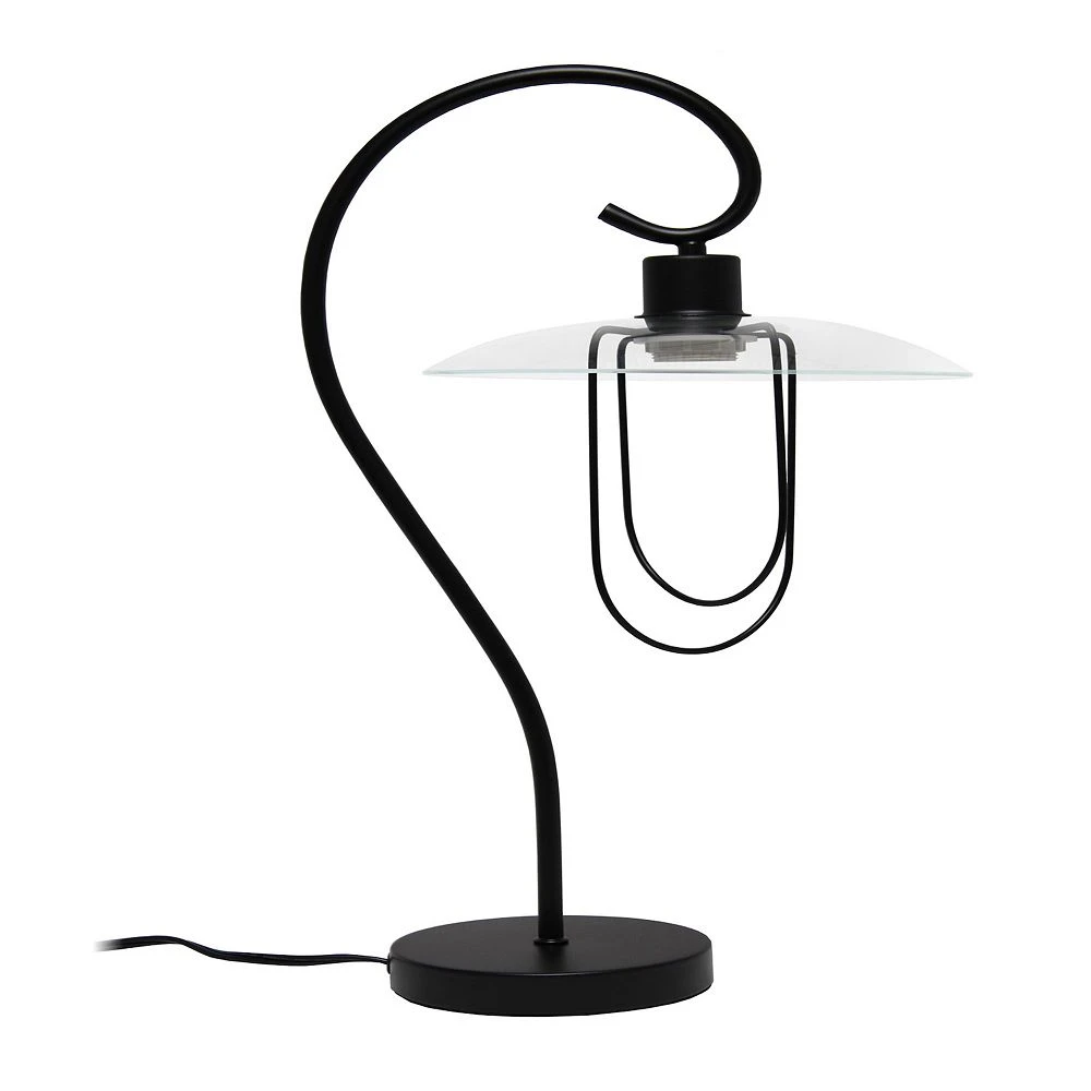 This modern table lamp features a curved metal base with a clear glass shade. Beautifully crafted in a vareity of finishes to choose from, this lamp will add a touch of elegance to any room in your home. Perfect for living room, bedroom, office, or anywhere you need to add fashion lighting. To get the complete industrial look, we recommend using a decorative Edison/Vintage bulb (not included).