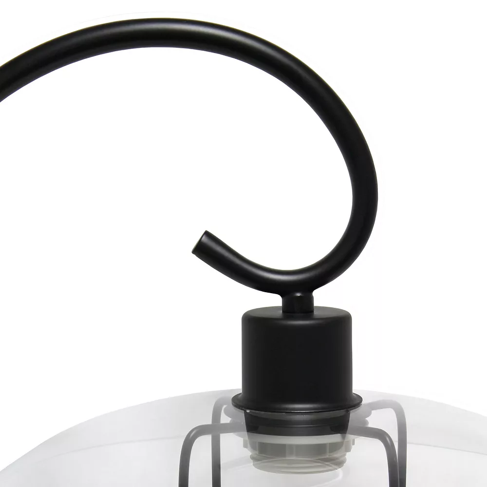 - Black metal base. Clear glass shade. Easily accessible on/off switch located on the cord. Uses 1 x 40W medium type A base bulb (not included).