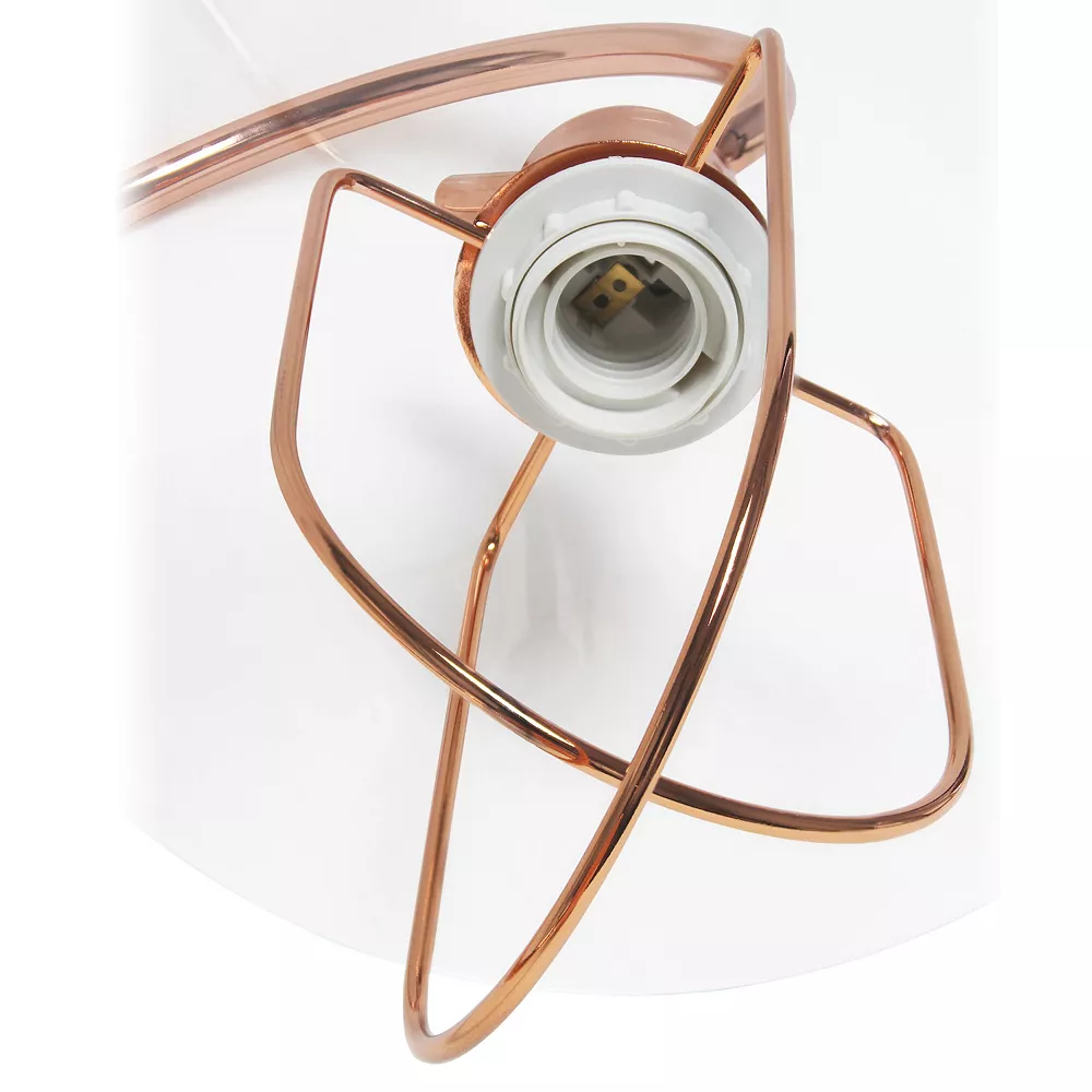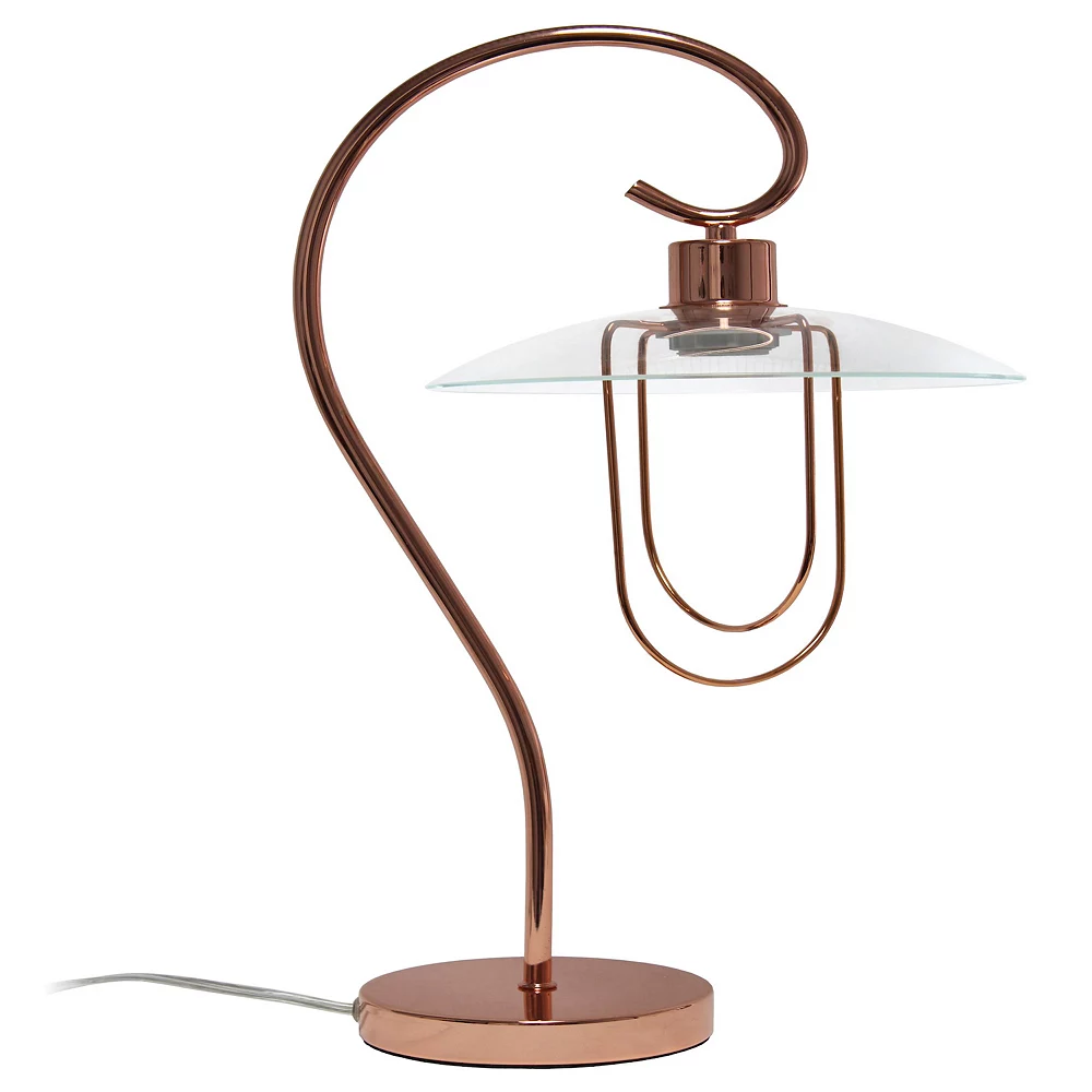 - Rose Gold metal base. Clear glass shade. Easily accessible on/off switch located on the cord. Uses 1 x 40W medium type A base bulb (not included).