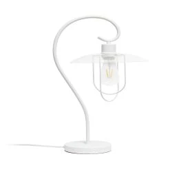 This modern table lamp features a curved metal base with a clear glass shade. Beautifully crafted in a vareity of finishes to choose from, this lamp will add a touch of elegance to any room in your home. Perfect for living room, bedroom, office, or anywhere you need to add fashion lighting. To get the complete industrial look, we recommend using a decorative Edison/Vintage bulb (not included).