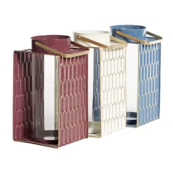 - Gold metal and glass lanterns feature a gold honeycomb design that bring out a blend of contemporary and bohemian vibes