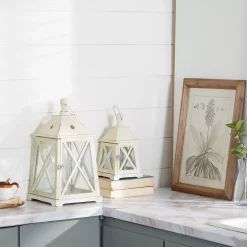 Stella & Eve Trapezoid White Wood & Glass Lantern 2-piece Set