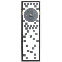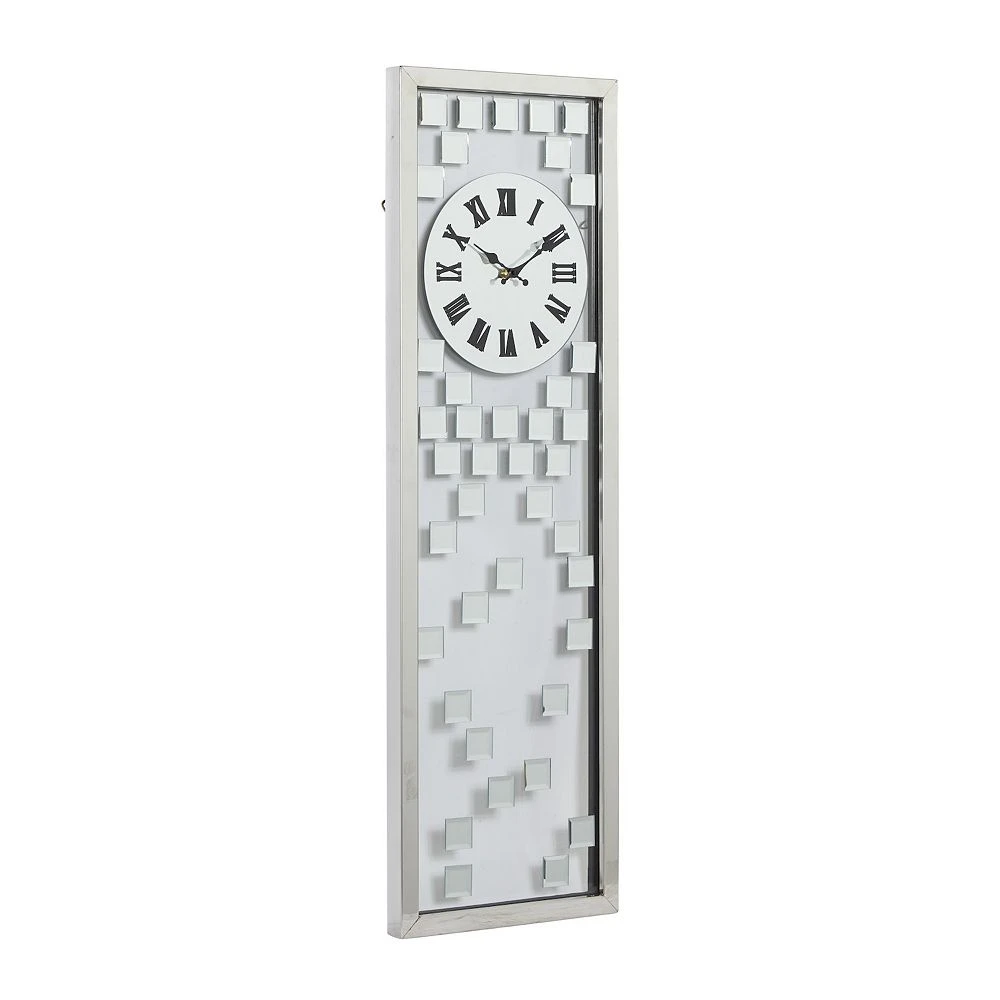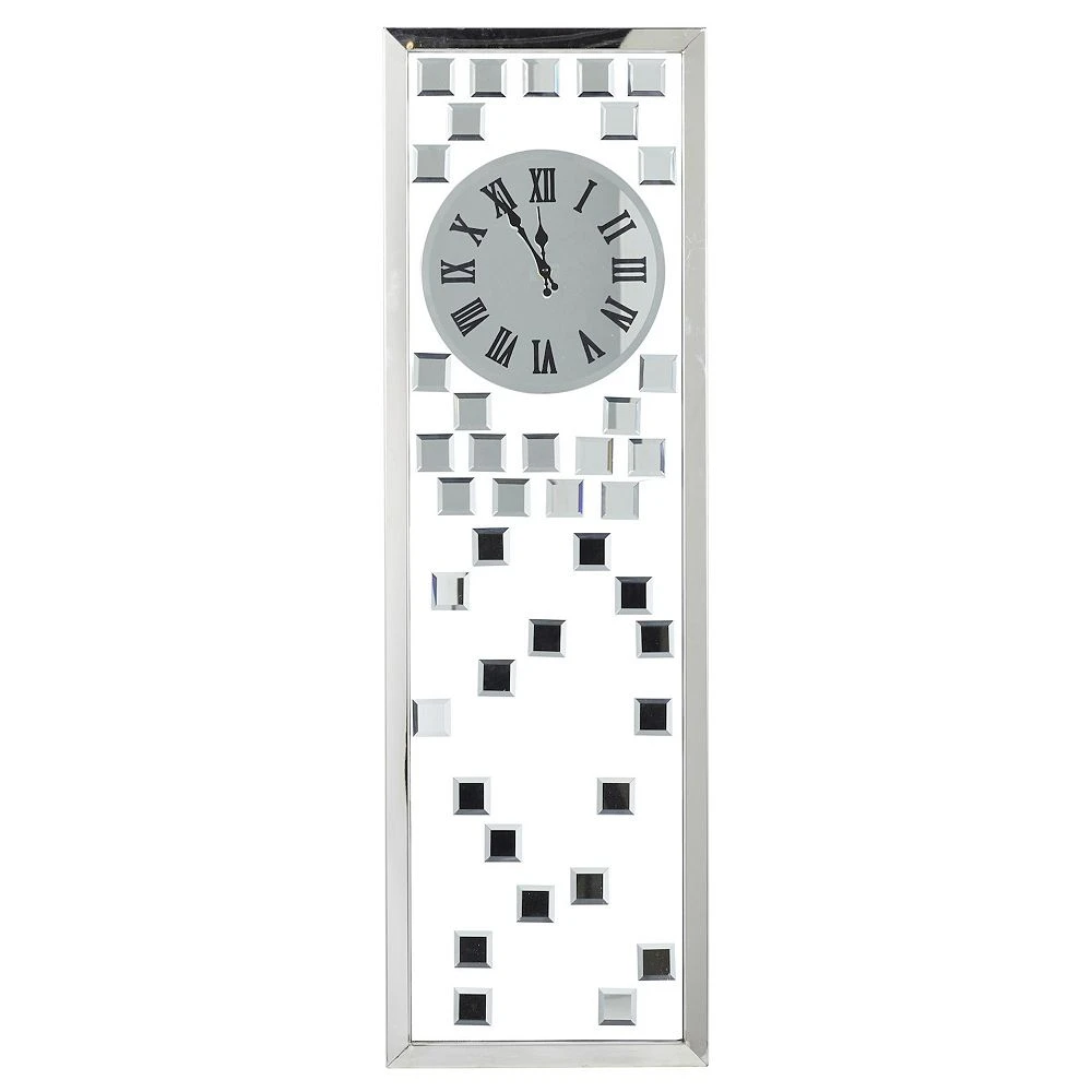 - Designed with abstract glass tile accents and black Roman numerals