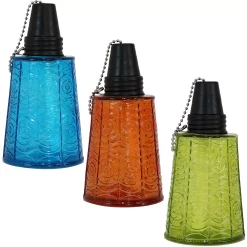 - POP OF COLOR: Includes 1 blue, 1 orange, and 1 green tabletop torch and 3 fiberglass wicks to give any space a touch of color