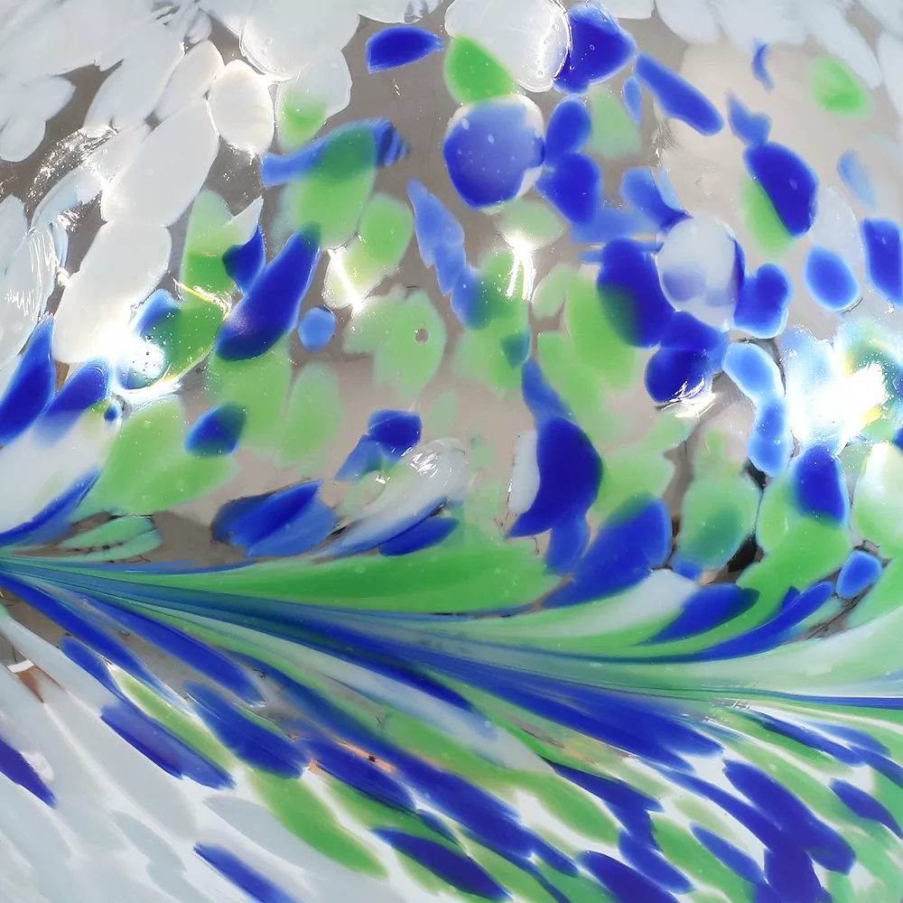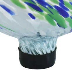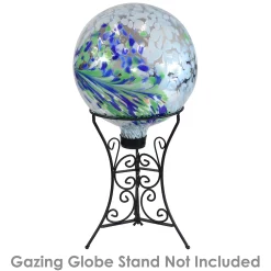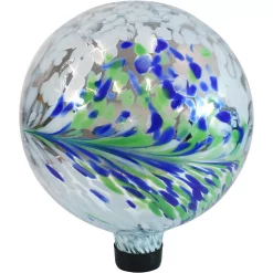 Add a soothing and subtle decorative touch to any garden or lawn with this stunning outdoor gazing globe. Featuring a design that calls to mind a beautiful bouquet of spring flowers, this outdoor gazing globe is constructed of white glass with a splash of green and blue for an attractive pop of vibrant colors. It features a stemmed bottom with a rubber cap that protects the edges of the stem from vibrations from other objects or outdoor impacts. This design also makes it easier to place this gazing globe in a decorative stand (please note, a stand is not included with this piece of decor and must be purchased separately). Always store the gazing globe indoors before freezing or harsh weather occurs to better ensure its longevity. This gazing globe will make any patio, deck, garden, flower bed, yard, or other landscaping area attractive and colorful with its unique, paint-blot-like design.