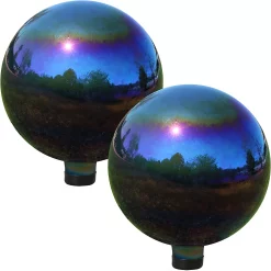 Add this set of 2 mirrored gazing globe ball to any garden or patio for a stunning outdoor accent. The reflective surface of this gazing globe is an attractive feature that will enhance any outdoor living space. It features a stemmed bottom with a rubber cap that protects the edges of the stem from vibrations from other objects or outdoor impacts. This design also makes it easier to place this gazing globe in a decorative stand (please note, a stand is not included with this piece of decor and must be purchased separately). Always store the gazing globe indoors before freezing or harsh weather occurs to better ensure its longevity. This gazing globe will make any patio, deck, garden, flower bed, yard, or other landscaping area attractive and colorful with its unique, mirrored design. This rich accent is sure to complement any modern or natural outdoor area and will add nice, soothing color anywhere.
