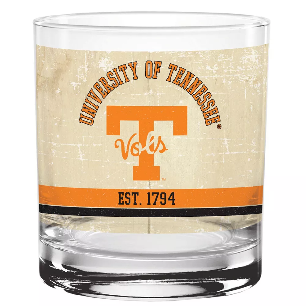 Savor your favorite game day beverage from this Tennessee Volunteers Vintage Retro Rocks glass. It holds up to 14oz., so you can stay refreshed all game long with your preferred drink in hand. Complete with Tennessee Volunteers graphics, this glass is the perfect way to display your team loyalty.