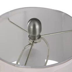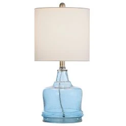 Simple, stylish, this lamp with a glass base and white shade is great for adding an easy touch of sophistication to your living room without breaking the bank.
