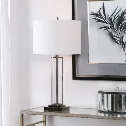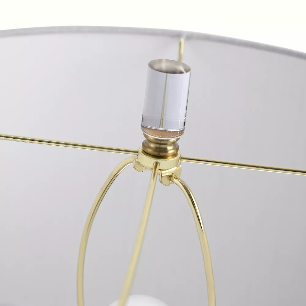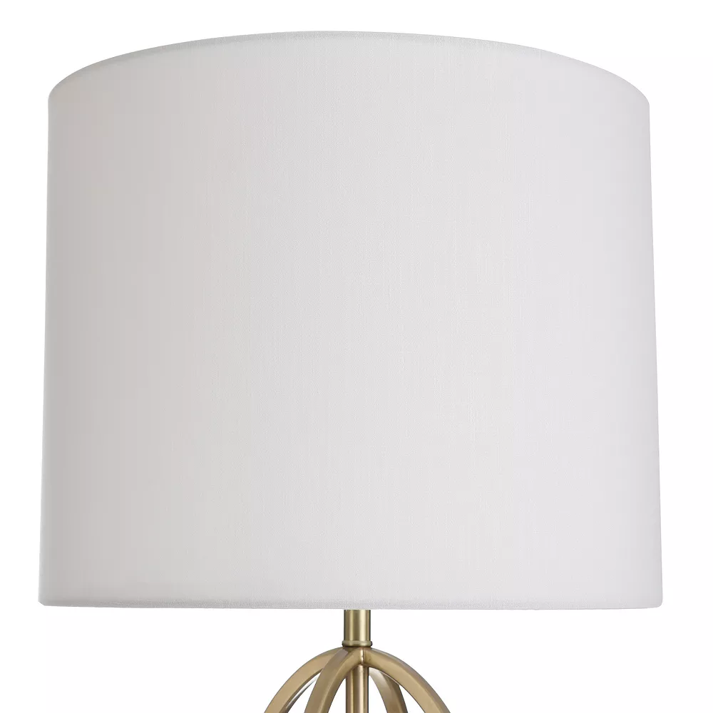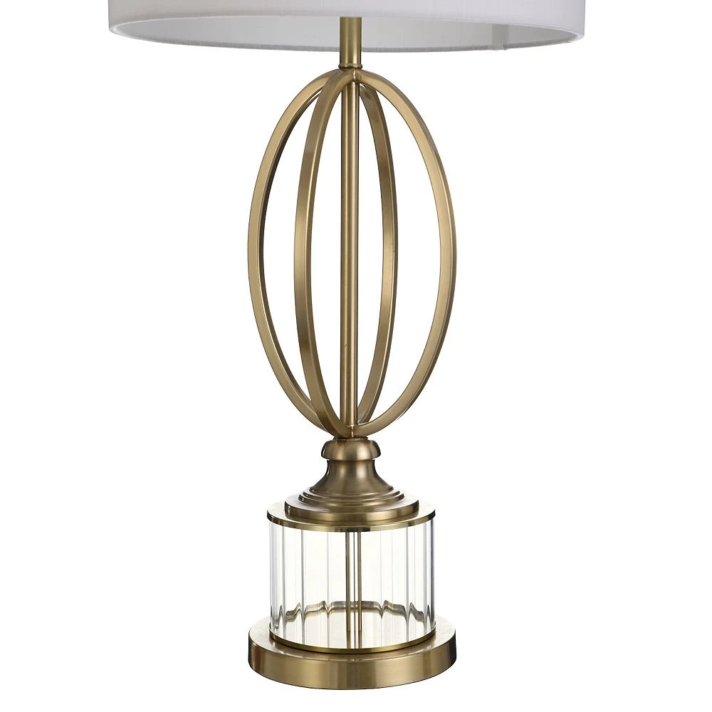 Instantly refresh your space with this Transitional Satin Brass Double Ring Table Lamp with Glass Pedestal.