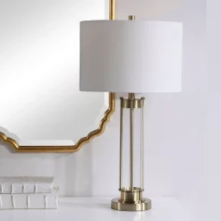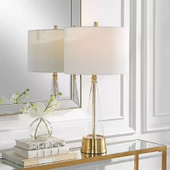 Instantly refresh your space with this 2 Steel Brass Poles with Clear Glass Globe Up Lights.