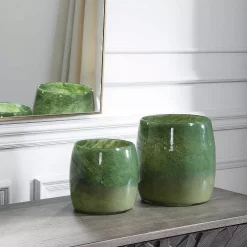 Add a stylish look to your existing decor with this Uttermost Matcha Green glass vase.